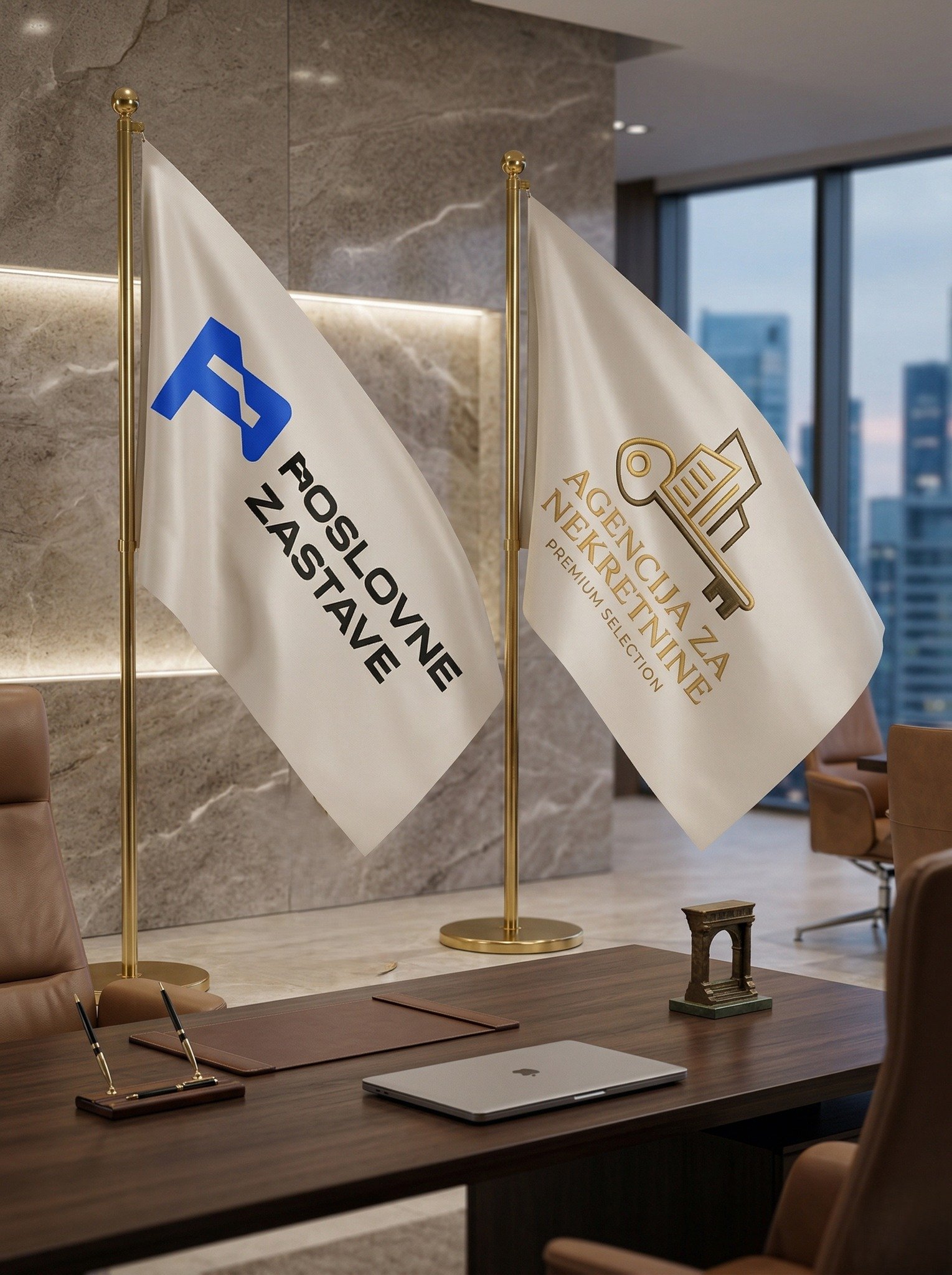 Pri izradi kancelarijskih zastava, važno je i to da logo bude u visokoj rezoluciji, kako bi finalni proizvod izgledao profesionalno i reprezentativno.