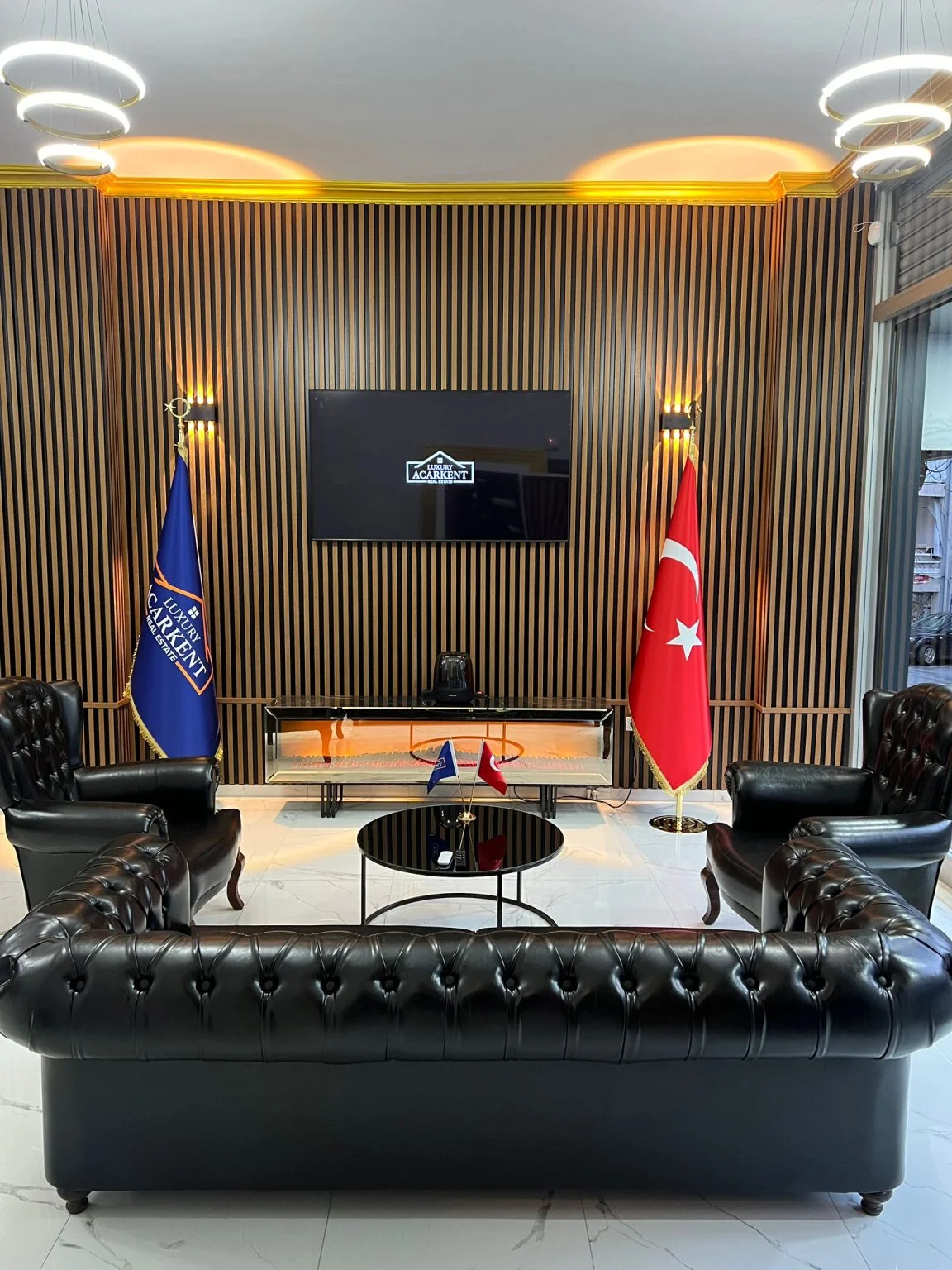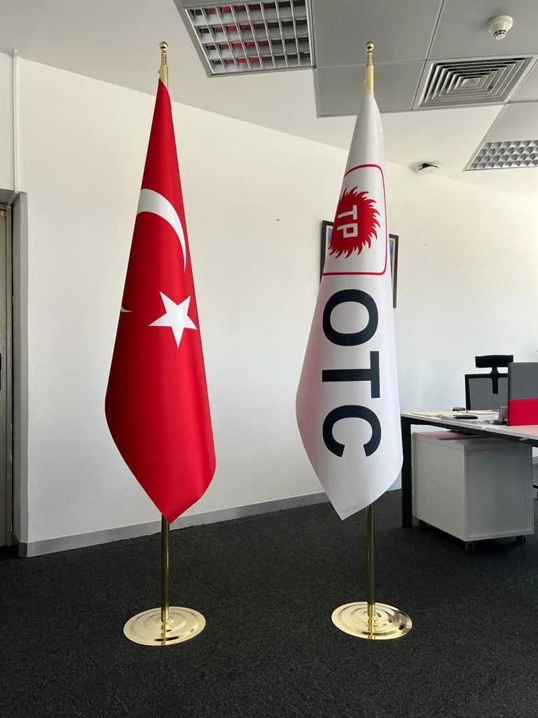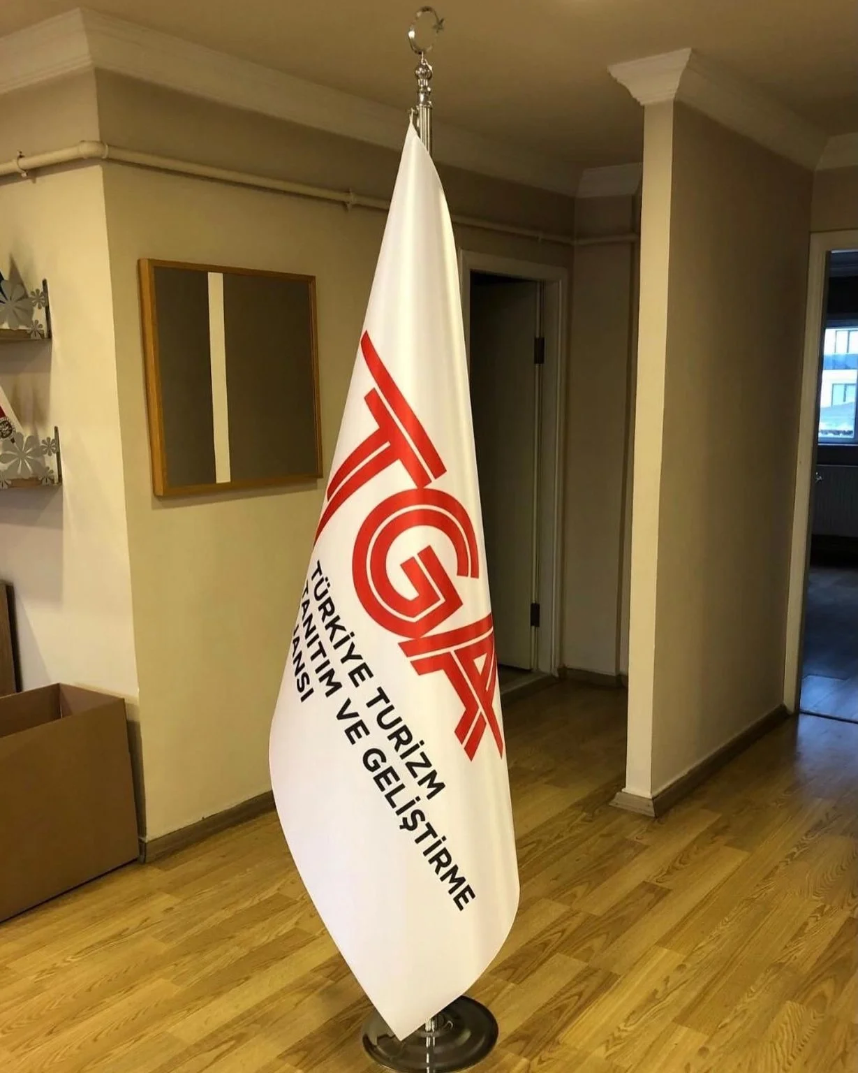 Kancelarijske zastave namenjene su za kancelarije, kabinete, holove, hotele, sale i druge reprezentativne prostore, gde doprinose dekoraciji i svečanom izgledu enterijera. U zavisnosti od želje kupaca koplja i postolja zastava se mogu izraditi u srebrnoj ili zlatnoj boji,.